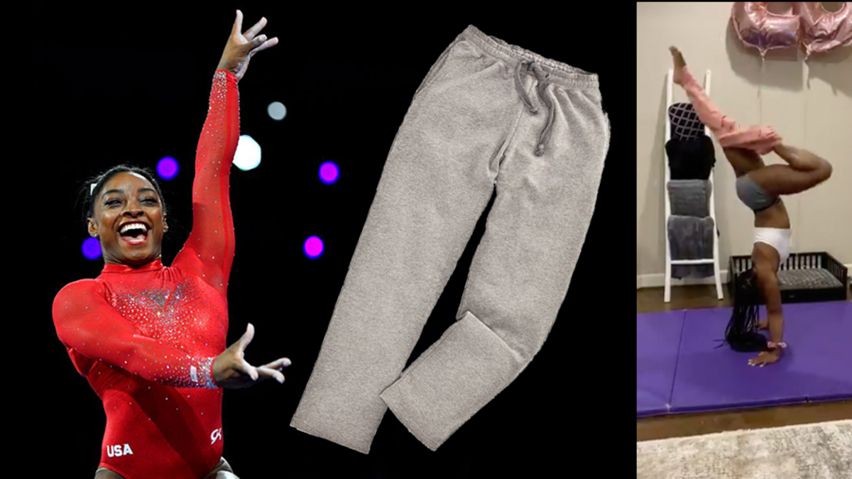 Simone is practicing routines to stay in shape but that's not all she's doing. She also just introduced a new social media workout challenge in a very remarkable video. She's calling it the handstand challenge and in it, Biles does a handstand then takes off a pair of sweatpants using only her feet all while maintaining her balance on her hands.