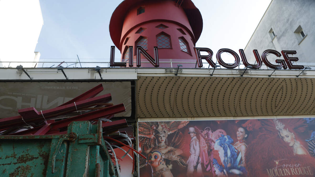 The red windmill sails at the world-famous Moulin Rogue cabaret collapsed on Thursday morning.
